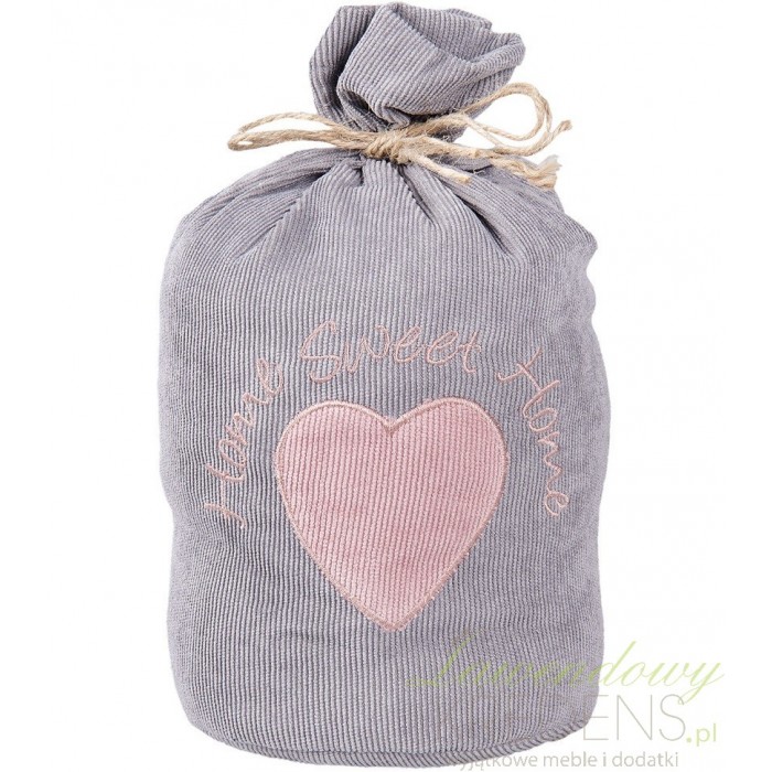 Uroczy stoper do drzwi jest uszyty z szarego materiału z nadrukiem różowego serca. Prążkowany materiał, i jego jasny kolor doskonale współgrają z brązowym sznurkiem i różowymi napisami. Masz dosyć trzaskających drzwi i potrzebujesz stylowej ozdoby? Ograniczniki do drzwi od marki Clayre&Eef są dostępne w wielu wzorach i kolorach także każdy znajdzie coś dla swojego wnętrza!
