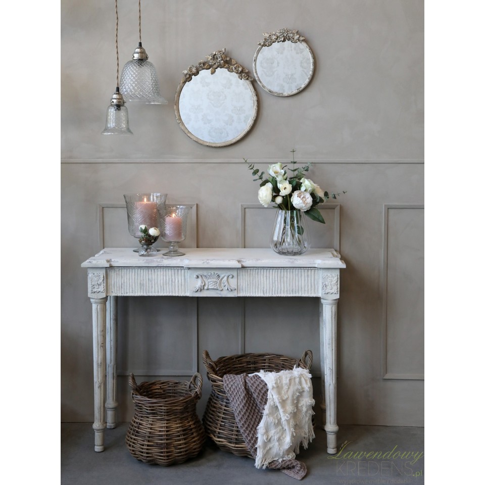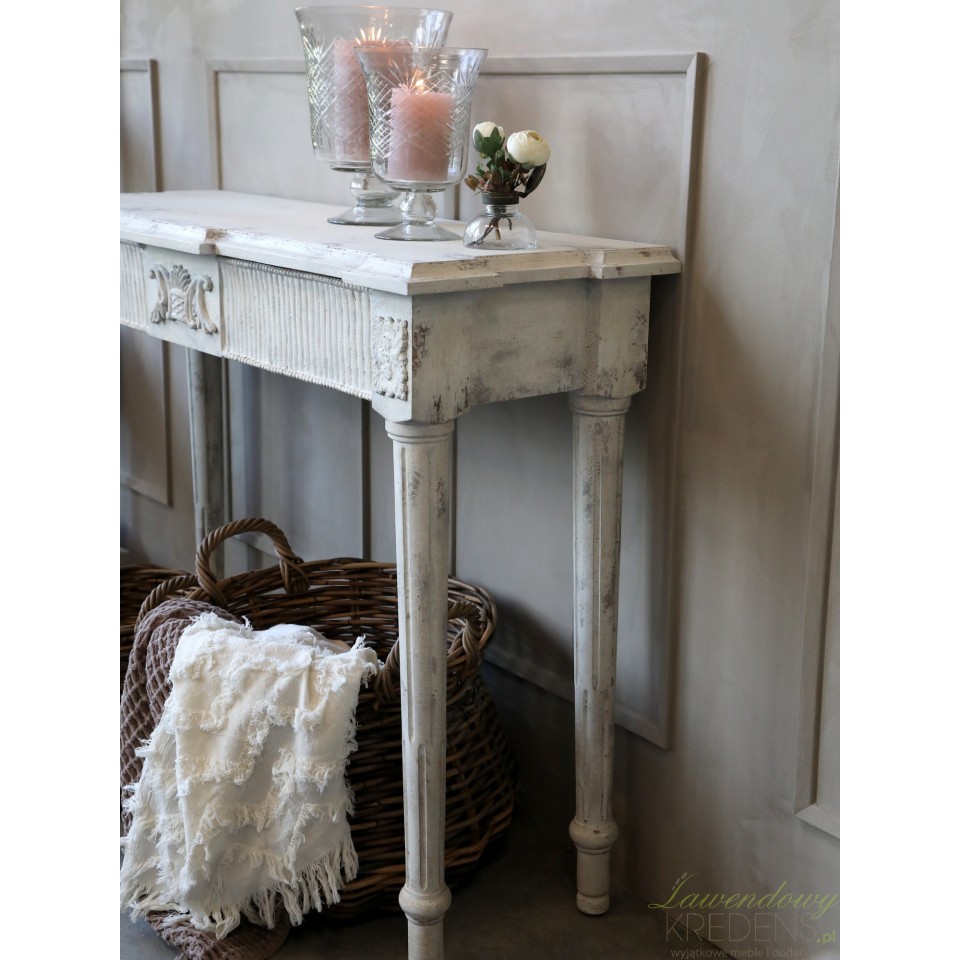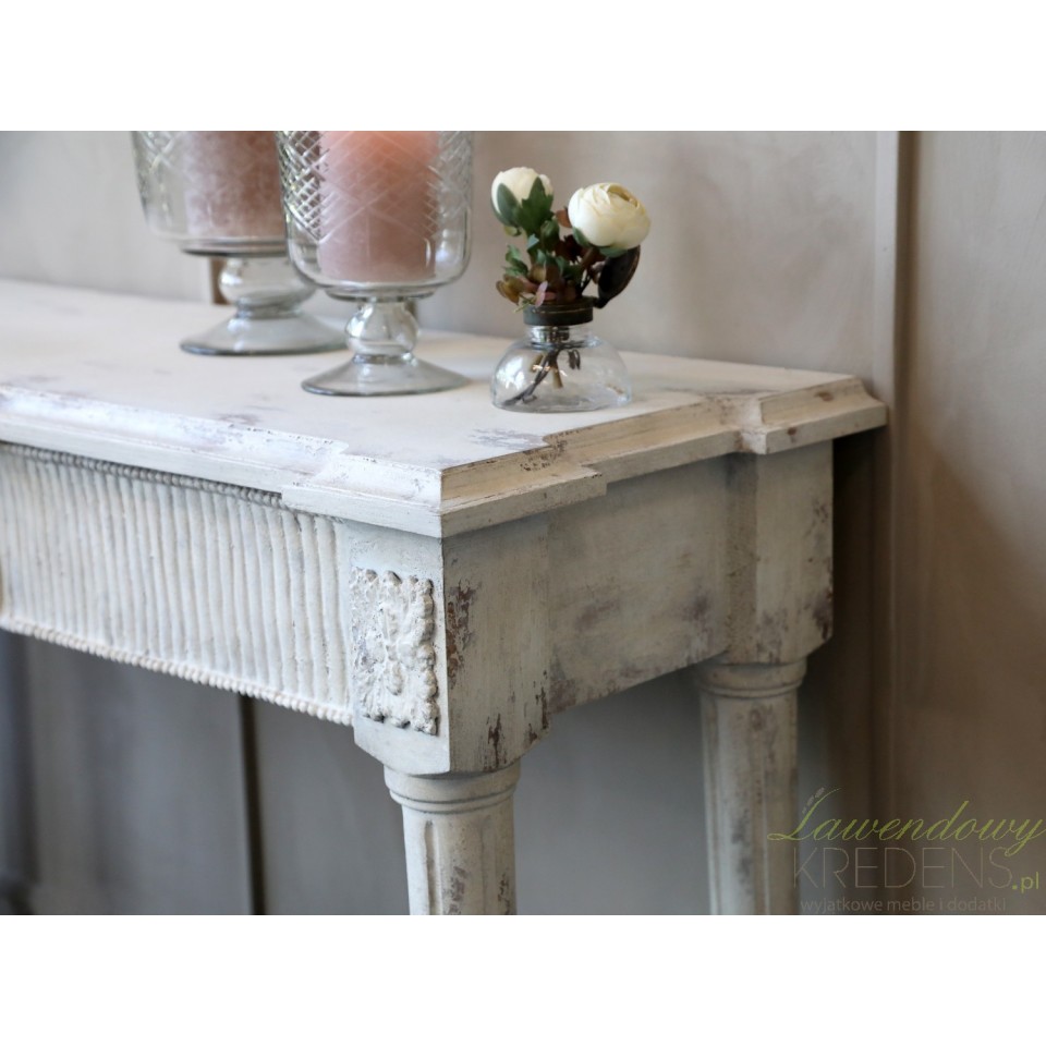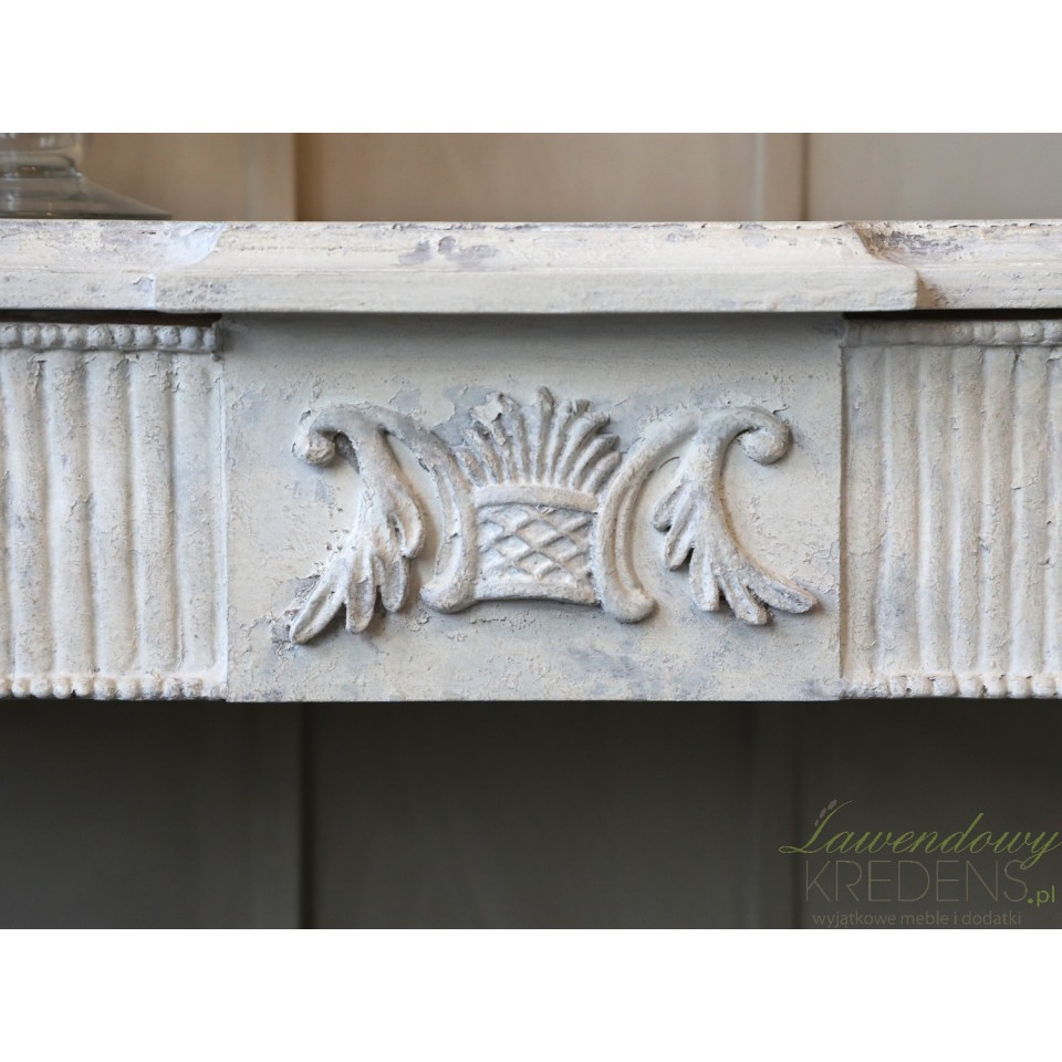 Antyczny motyw zaakcentowany romantyczną stylistyką powoduje, że konsola postarzana wygląda jakby pochodziła z zupełnie innej epoki.