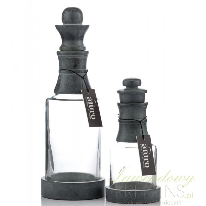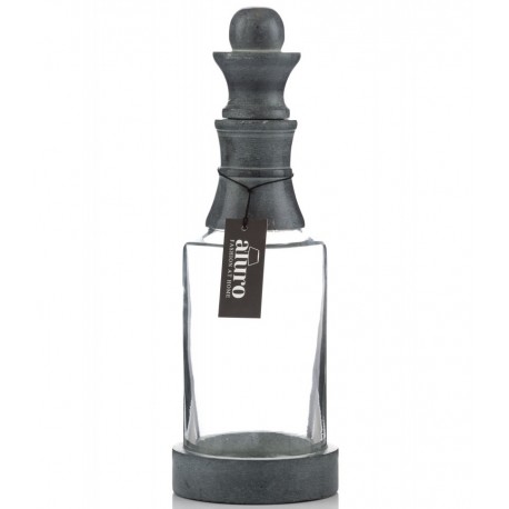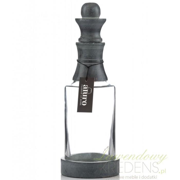 Butelka szklana firmy Aluro ma przepiękny elegancki wygląd. Wykonana jest z wysokiej jakości szkła i konglomeratu. Ma przezroczysty kolor i czarne elementy w postaci podstawki i korka. Artykuły dekoracyjne Aluro to produkty, o których zawsze marzyłaś!