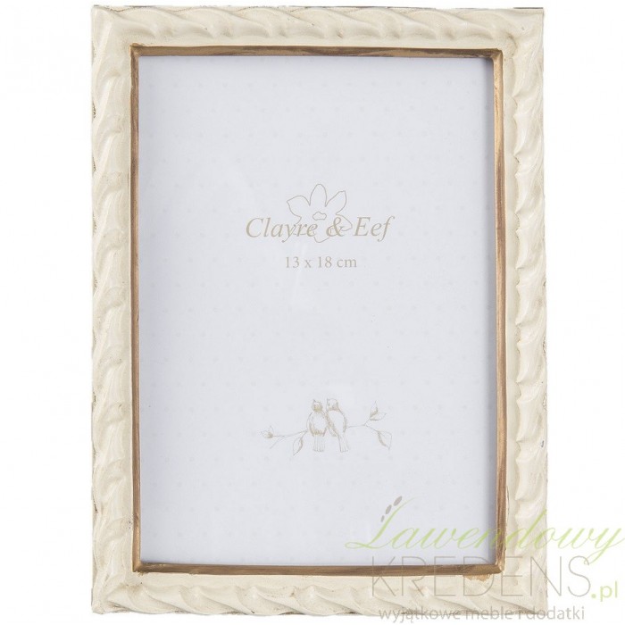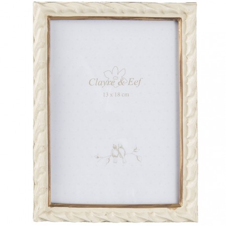 Piękna ramka na zdjęcia marki Clayre & Eef o kremowej powierzchni ze złotą obwódką na około miejsca na zdjęcie.