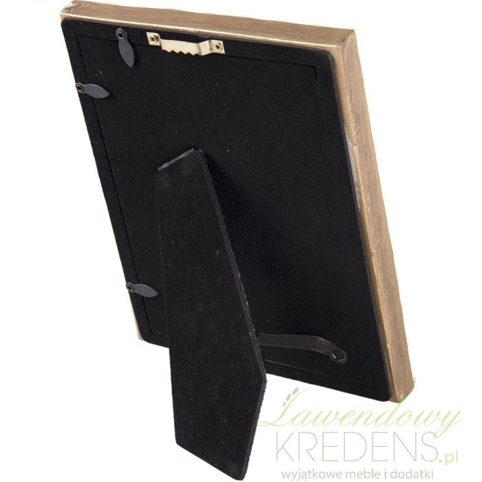 Prostokątne ramki w stylu prowansalskim wykonane z tworzywa i pomalowanestonowaną, kremową farbą. Dodatkowo na około zdjęcia ramki posiadają złotą obwódkę, również w stonowanym odcieniu. Dzięki praktycznej nóżce ramki można postawić na regale czy komodzie zarowno w pionie jak i w poziomie. Co więcej, ramka posiada uchwyt dzięki któremu można ją także powiesić na ścianie.