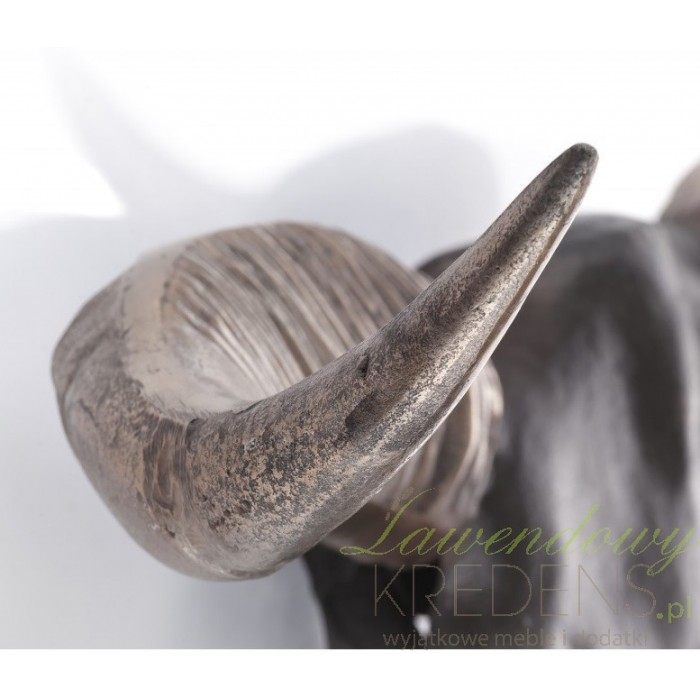 Poroża do dekoracji ściany to oryginalne artykuły dekoracyjne wnętrz. Poroże Aluro w formie głowy byka zostało wykonane w kolorze ciemnego brązu i z delikatnymi posrebrzeniami rogów. Doskonałym miejscem do ekspozycji poroża jest puste miejsce nad kominkiem lub na ścianie w eleganckim salonie. Motyw dzikości i naturalnego piękna uzyskasz dzięki nieszablonowym ozdobą ściany.