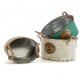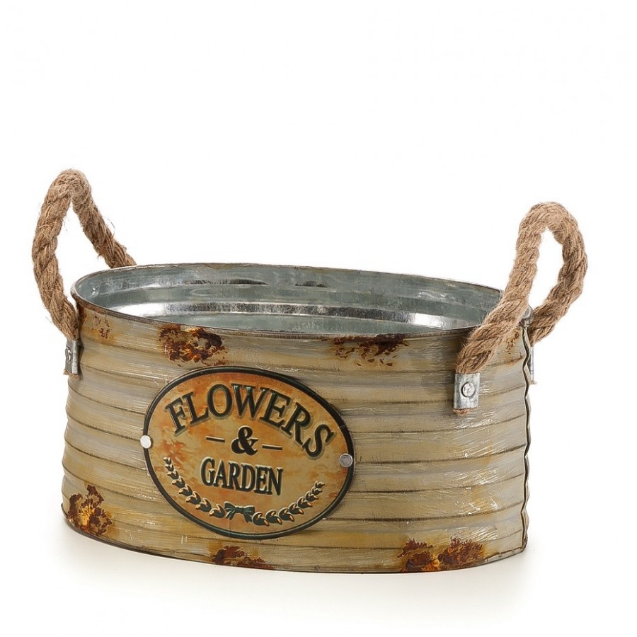 Artykuły dekoracyjne firmy Aluro to także metalowa osłonka Aluro o owalnym kształcie. Ma beżowy kolor i jest mocno postarzana, co nadaje jej unikalny wygląd. Uchwyty wykonane są w formie wygodnych sznurów. Całość wygląda urzekająco.