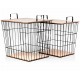 Metalowe kosze z drewnianymi blatami i podstawami to ażurowe meble do wnętrz w stylu skandynawskim i industrialnym.