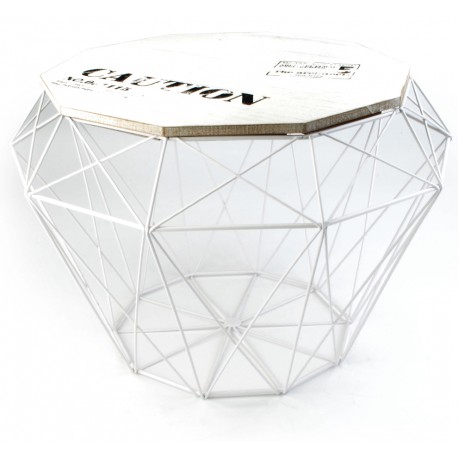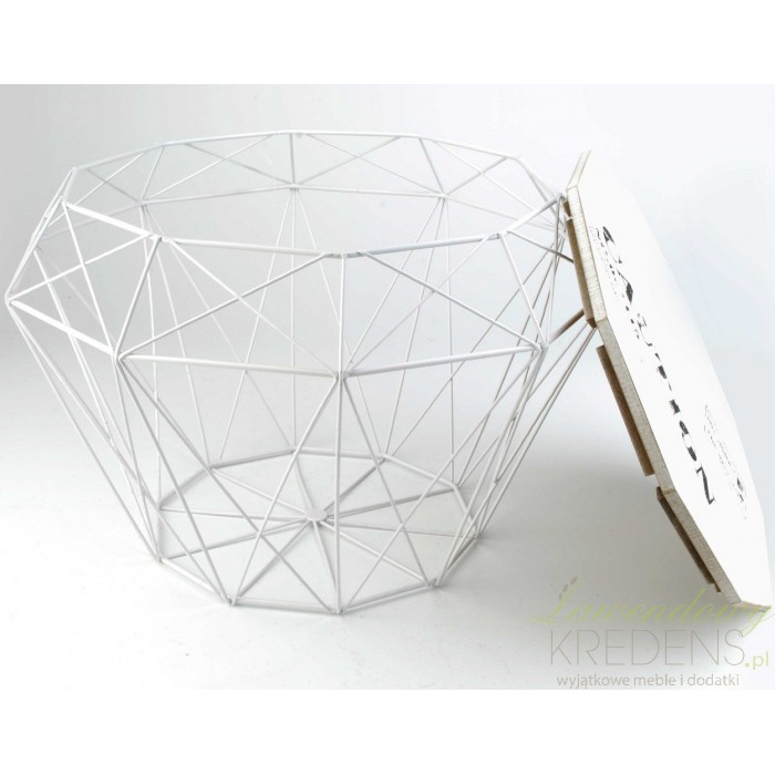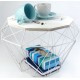 Metalowy kosz z funkcją stolika to praktyczny dodatek w stylu industrialnym, który posiada jasny kolor i interesujące wykończenie.