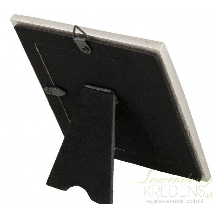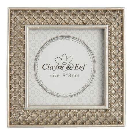 Kwadratową ramkę prowansalską o boku 10 cm możesz wykorzystać w każdym wnętrzu. Zdobiona rzeźbieniami ramka na zdjęcia Clayre&Eef jest wykonana w srebrnym kolorze. Piękne ramki na zdjęcia to wymarzone dodatki jeżeli wolisz eksponować pamiątkowe zdjęcia niż trzymać zamknięte w albumie. Perfekcja wykonania i dwie możliwości ustawienia ramki - wybór należy do Ciebie.
