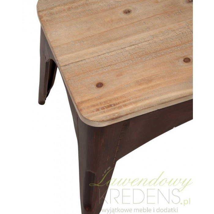 Długa ławka industrialna to mebel, na którym może usiąść kilka osób. Meble industrialne są polecane do letnich ogrodów, tarasów lub do przedpokoju. Ciemnobrązowa ławka w stylu industrialnym ma proste nogi połączone metalowym łukiem pod siedziskiem. Drewniane siedzisko ze słojami to świetne podkreślenie jej industrialnego stylu.