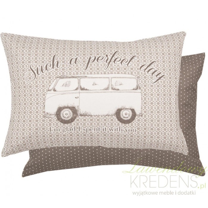 Prostokątna poszewka retro wykonana z bawełny, poszewka ta posiada motyw starego autobusu oraz napisu. Poszewki ozdobne Clayre & Eef to wspaniałe dodatki w stylu retro , które dodzą starodawnego klimatu.