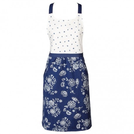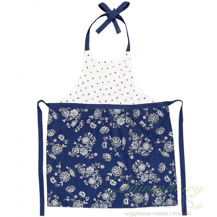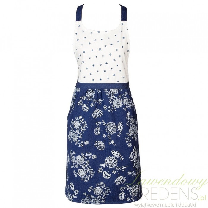 Fartuszek kuchenny od firmy Clayre & Eef. Fartuch wykonany z wysokiej jakości bawełny jest biało-granatowy we wzory w kwiaty. Fartuszek posiada pasek przy szyi oraz w talii, dzięki któremu będzie wygodnie przywiązany do naszej sylwetki. Fartuszki kuchenne- bez nich gospodyni domu nie może się obejść. Wybierz swój ulubiony i ciesz się niebanalnym wyglądem nawet podczas przyrządzania posiłków!