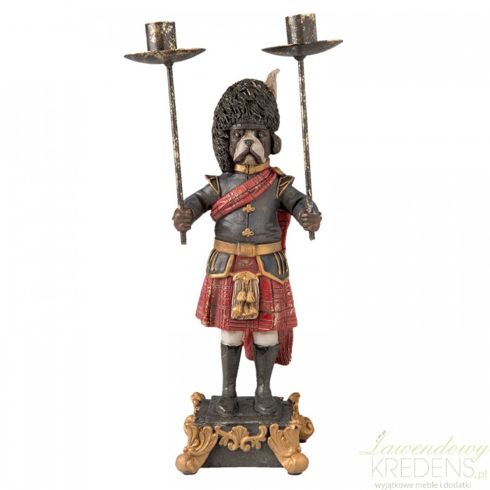 Świeczniki Clayre&Eef potrafią w bardzo prosty sposób odmienić wygląd każdego pomieszczenia, a ich bogata oferta to gwarancja, że każdy znajdzie coś dla siebie - nawet wielbiciel czworonogów. Świecznik o wysokości 30 cm to pies ze świecznikiem trzymający dwie pochodnie. Unikalna ozdoba kredensu lub stolika w salonie.
