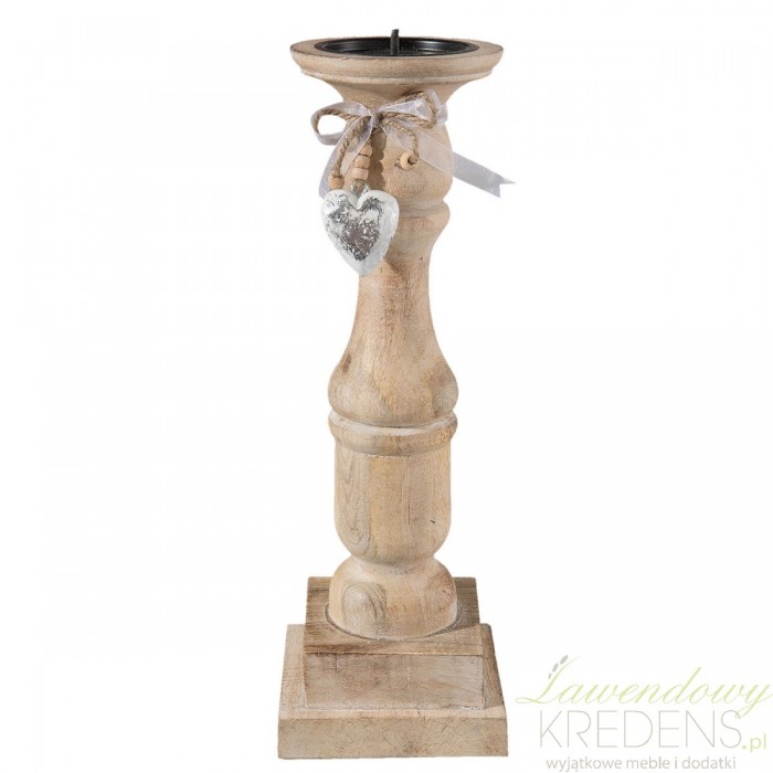Drewniany świecznik firmy Clayre & Eef ma ciepły brązowy kolor. Stoi na kwadratowej, wysokiej podstawce i jest pięknie rzeźbiony. Posiada u góry cudowne ozdobne serduszko. Drewniane świeczniki to doskonały prezent dla każdego.