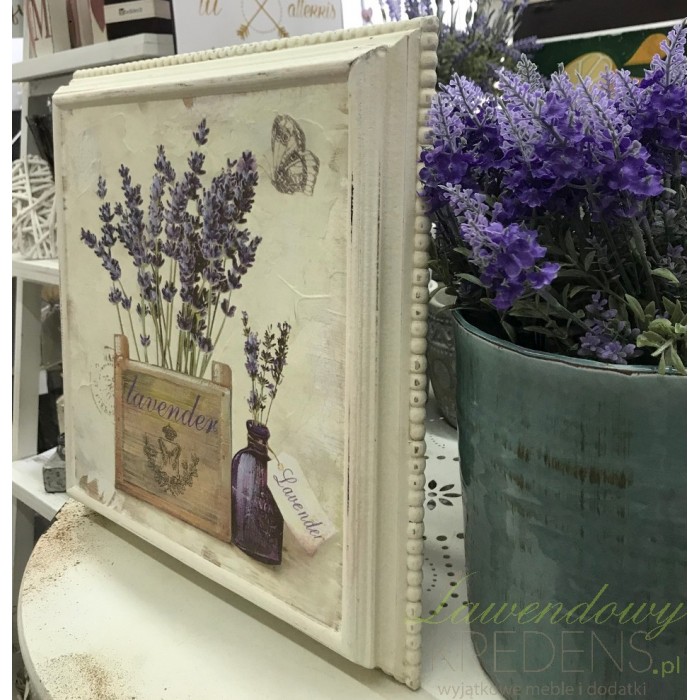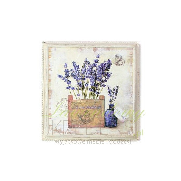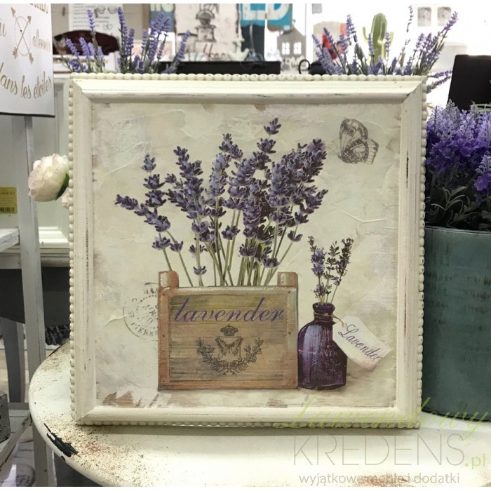 Obraz z lawendą to typowy obraz w stylu prowansalskim z oryginalnie wykończoną ramką.