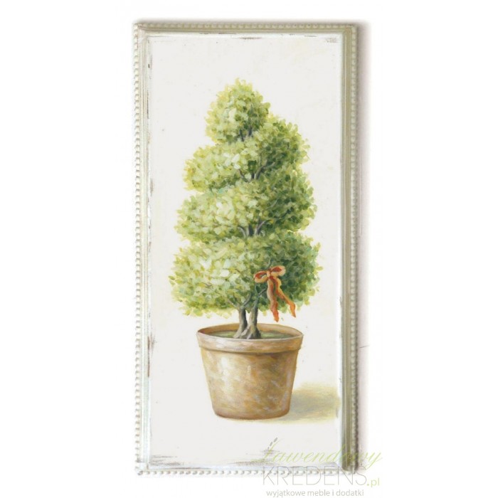 Obraz prowansalski jest wąski i wykonany jest z dobrej jakości drewna. Ma prostokątny kształt, a na jasnym tle znajduje się przepiękne drzewko z ozdobną czerwoną wstążeczką. Obrazy w stylu prowansalskim świetnie udekorują ścianę i staną się jej fantastyczną ozdobą. Styl prowansalski to jest to o czym marzysz.