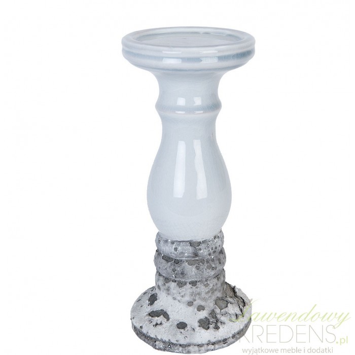 Szary ceramiczny świecznik prowansalski firmy Clayre & Eef o ciekawym wyglądzie!