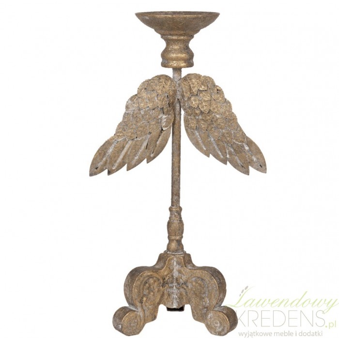 Złoty świecznik ze skrzydełkami to dekoracja która nada postarzanego klimatu w każdym pomieszczeniu.