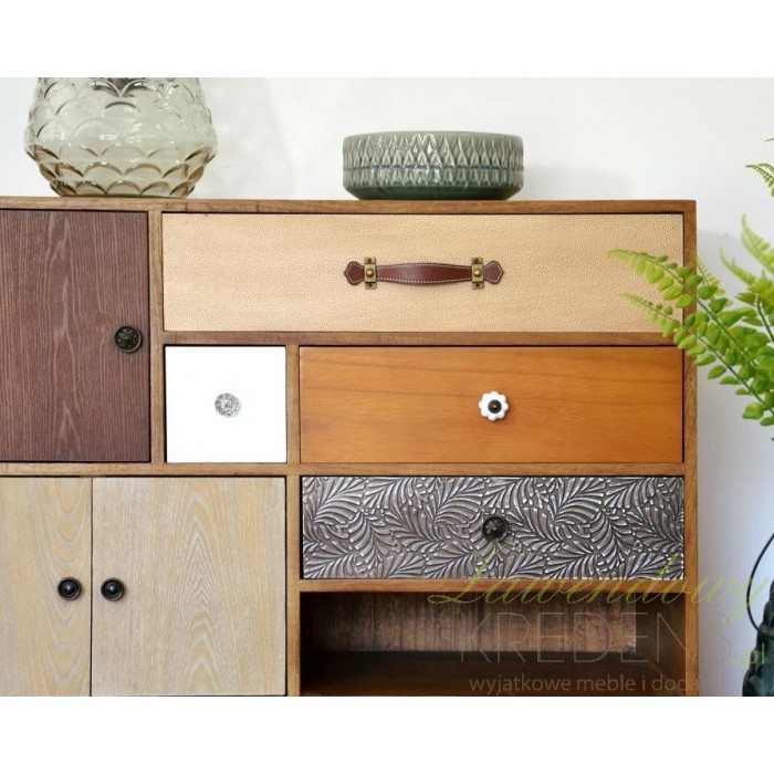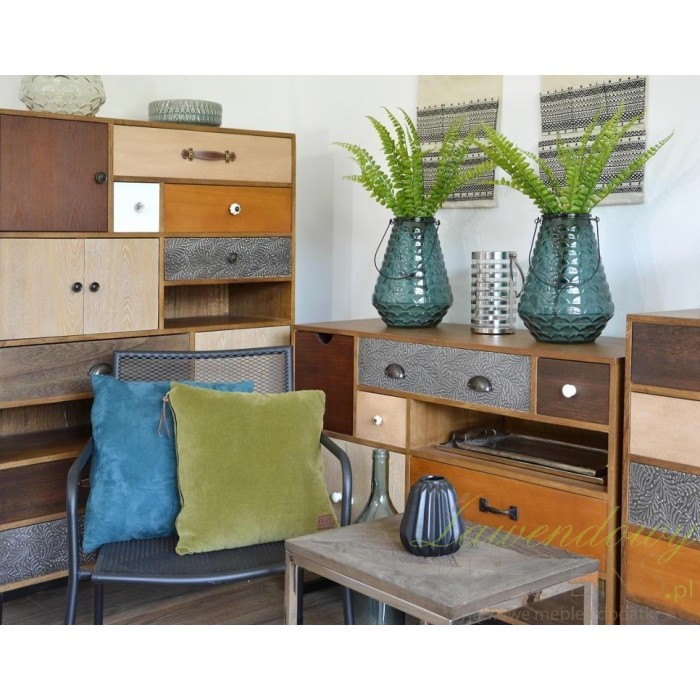 Komoda Livin Hill ma aż sześć szufladek w różnym rozmiarze i jedną szafkę. To co wyróżnia meble w stylu retro to piękne i wyraziste kolory. Każda z szuflad ma gałkę lub uchwyt innego rodzaju, co podkreśla jej oryginalny styl. Komoda Portogrande to mebel z natury wyglądający na stary, ale świetnie odnajdujący się w wielu współczesnych aranżacjach np. skandynawskich i vintage.