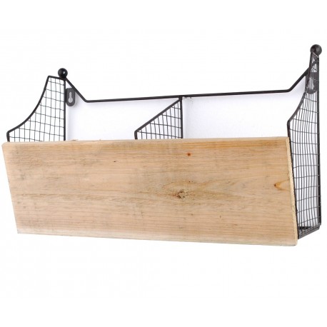 Podłużna szafka ścienna została wykonana w całości z metalu i drewna. Front szafki ściennej to drewniana płyta zakrywająca zawartość dwóch koszy. Doskonały sposób na przechowywanie bibelotów w kuchni lub w przedpokoju. Metalowe meble takie jak półki ścienne nie zajmują dużo miejsca i dają niezliczone korzyści.