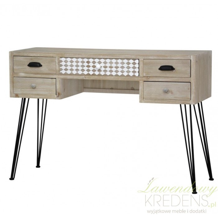 Biurko z kolorowymi szufladami jest ustawione na metalowych nogach zbudowanych z połączenia kilku metalowych prętów. Gwarancja zadowolenia dzięki pięciu szufladom, w których przechowasz potrzebne dokumenty i biurowe akcesoria. Biurko Loano od marki Livin Hill ma kolor jasnego i surowego drewna. Bez obaw zmieścisz na nim podręczny komputer, plik dokumentów i stos książek, a nawet ramkę ze zdjęciem.