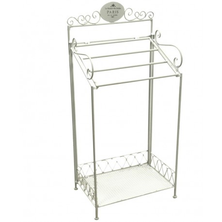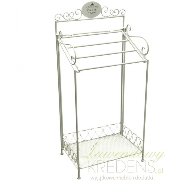 Wieszak na ręczniki jest w stylu francuskim i ma wymiary 47x31cm. Stojak na ręczniki jest w jasnym kolorze i wykonany został z metalu. Wieszak przyspieszy suszenie mokrych ręczników. Możesz je rozwiesić na drążkach a pozostałe ręczniki poukładać w dolnej części. Dodatki w stylu francuskim to szyk i elegancja, które są gwarancją pięknego wnętrza!