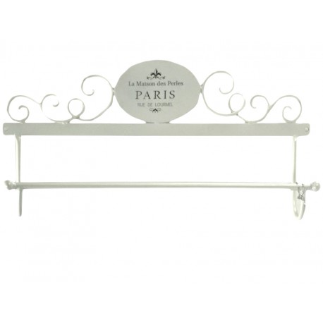Wieszak francuski wykonany jest z metalu i ozdobiony tabliczką z napisami oraz finezyjnymi gięciami metalu. Biały wieszak na ręczniki możesz z powodzeniem wykorzystać w różnych wnętrzach. Na niewielkim drążku zmieści się kilka ręczników lub ściereczek. Dodatki do łazienki w stylu francuskim cieszą oko i pomagają uporządkować wnętrze.