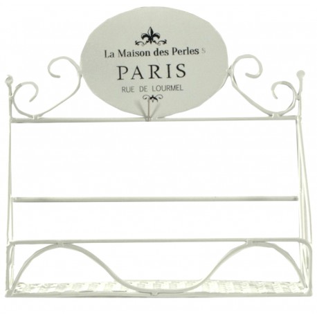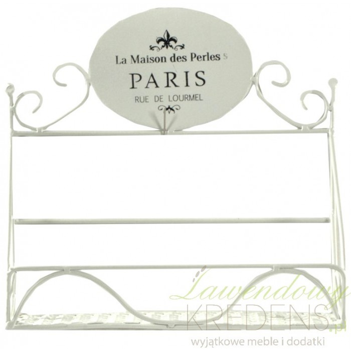 Styl francuski może spowodować, że Twoje wnętrze odżyje na nowo. Półka ścienna to idealny przykład, ponieważ zawieszając ją na ścianie nie stracisz miejsca w ciasnym wnętrzu. Ozdobiona gięciami metalu, owalną tabliczką i cała pomalowana na jasny kolor nie zawiedzie Cię. Styl francuski świetnie pasuje również do antycznych i loftowych przestrzeni.