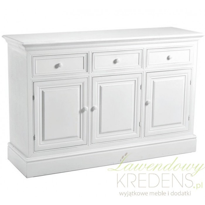 Biała, szeroka komoda prowansalska z kolekcji Lenti.