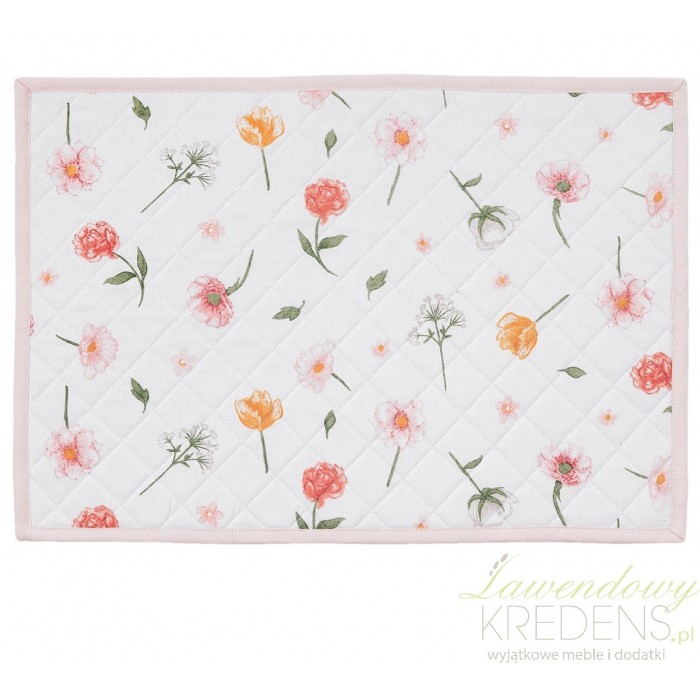 Podkładki na stół firmy Clayre & EEf są dwustronne. Z jednej strony są różowe, a z drugiej na białym tle znajdują się kolorowe kwiatuszki. Podkładki mają prostokątny kształt i wykonane są w stu procentach z bawełny. Podkładki stołowe wspaniale się prezentują i zapewnią ciepły klimat twojej kuchni.