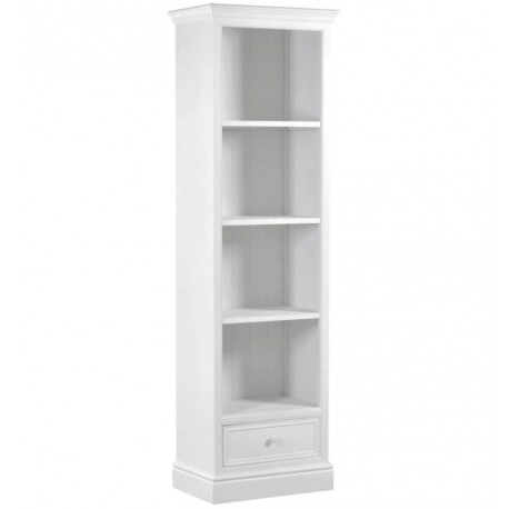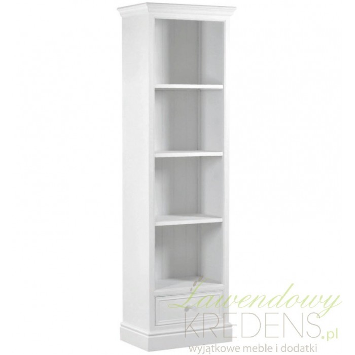 Biblioteczka prowansalska dzięki białemu kolorowi perfekcyjnie podkreśli naturalny wygląd wnętrza. Wąska biblioteczka to świetny mebel do wykorzystania w salonie lub w gabinecie. Regał w stylu prowansalskim to solidan konstrukcja wyposażona w trzy półki. Meble prowansalskie to meble praktyczne i naturalnie piękne.