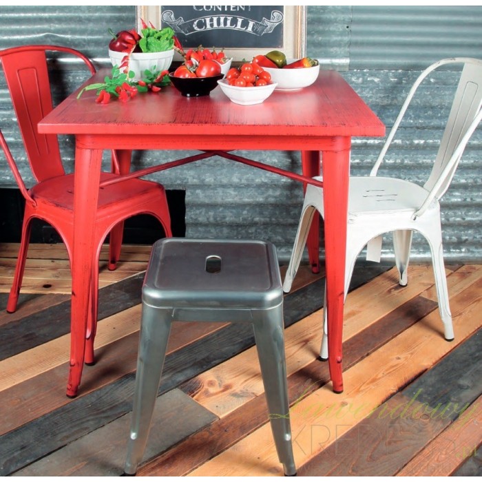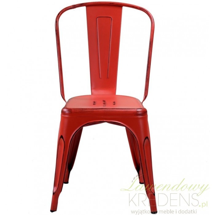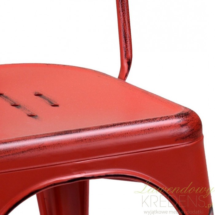 Krzesło industrialne jest wykonane w całości z metalu i ozdobione przetarciami na krawędziach nóg i siedziska. Czerwone, metalowe krzesło z prostym oparciem możesz wykorzystać dosłownie wszędzie. Wybierz krzesła w stylu industrialnym na taras lub do ogrodu aby jeszcze bardziej podkreślić wakacyjny klimat. Krzesła z kolekcji Anti równie dobrze możesz wykorzystać we wnętrzu takim jak kuchnia lub jadalnia.