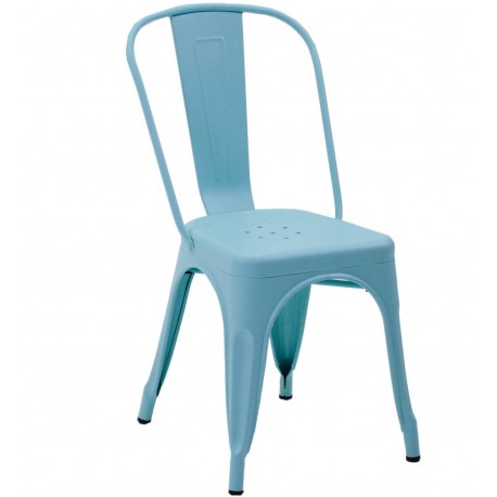 Metalowe krzesło industrialne wykonane jest w pastelowym kolorze o niebieskim odcieniu, zobacz jak pięknie zaprezentuje się w Twoim lokum!