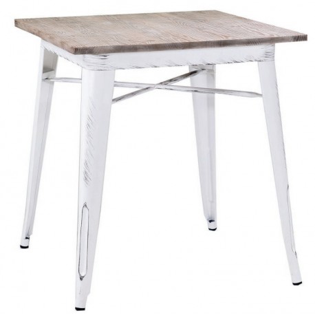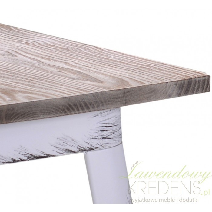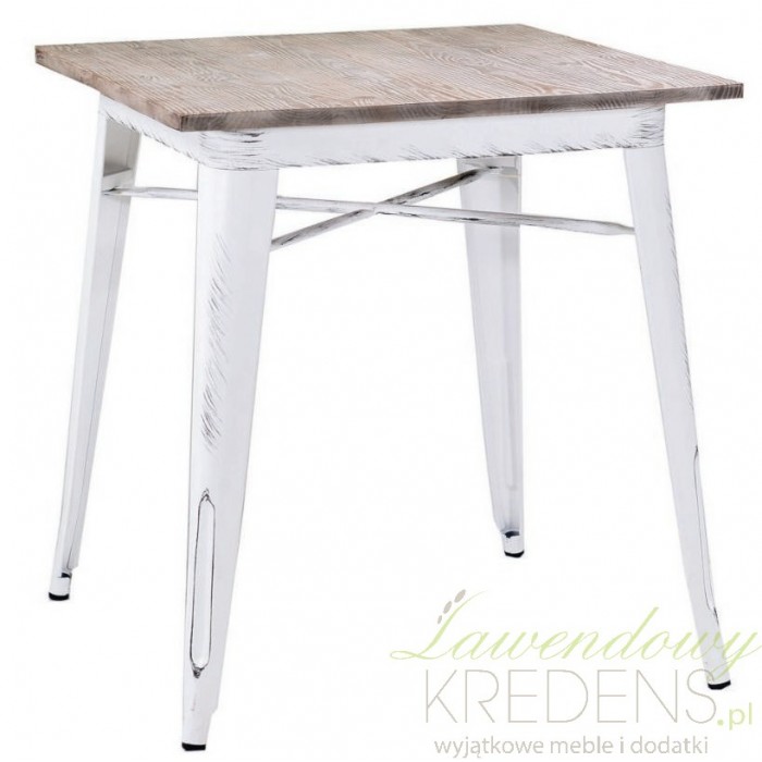 Metalowy stolik sprawdzi się nie tylko jako mebel do spędzania czasu przy filiżance kawy ale nada loftowemu wnętrzu jeszcze więcej surowości. Stolik industrialny został wykonany z metalu i ma naturalny blat z brązowego drewna. Białe nogi z ciemnymi przetarciami to jego elementy rozpoznawcze. Wybierz metalowe meble dla swojego wnętrza lub lokalu i zainspiruj się prostym i surowym stylem loft.