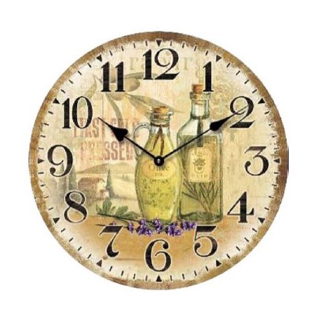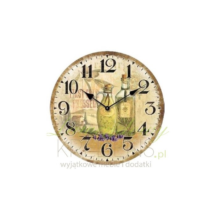 Zegary ścienne w stylu prowansalskim od włoskiego producenta to doskonałe odmierzacze czasu do kuchni. Zasilane jedną baterią posiadają otwór do zamocowania na ścianie. Wybierz zegary do kuchni z oliwą, które przybrały oliwkowe barwy i zdobione są dodatkowo przenikającymi napisami. W kuchni tez powinna panować świetna atmosfera, pozwól o nią zadbać zegarom prowansalskim.