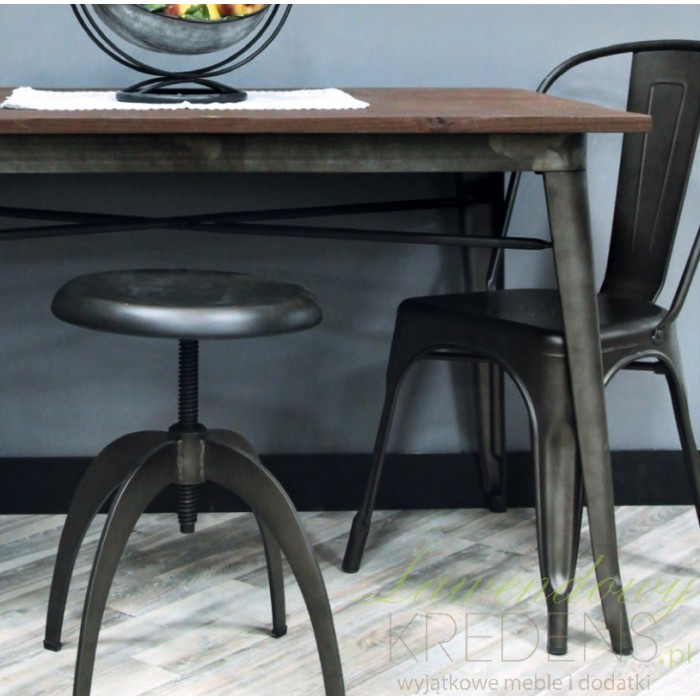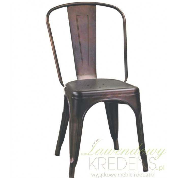 Stylowe krzesło industrialne Lofti jest uznawane za doskonałe połączenie brązowego koloru i antycznych oznak starości.