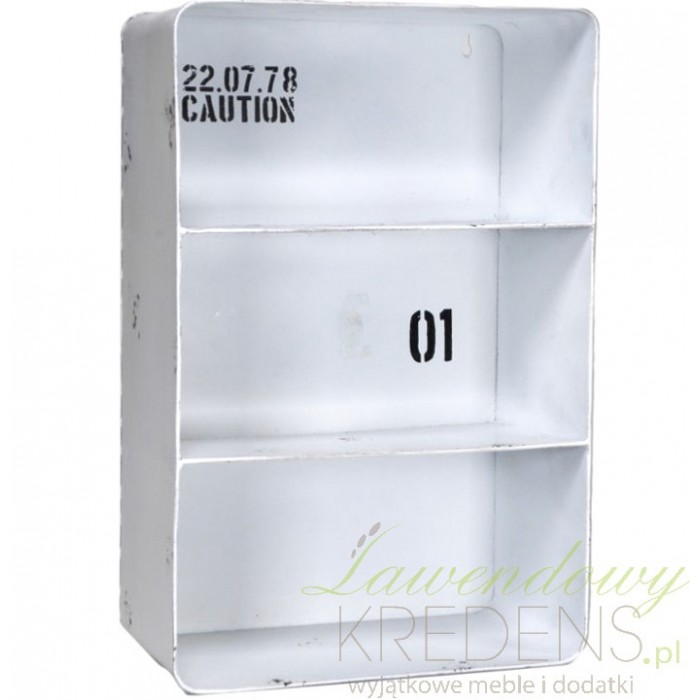 Metalowa szafka ścienna z kolekcji Lofti to mebel praktyczny z antycznymi postarzeniami. Szafka industrialna ma biały kolor i dwie półki wewnątrz. Lekko zaokrąglone krawędzie nadają jej delikatności, a czarne napisy loftowego charakteru. Wybierz meble industrialne do swojej kuchni, łazienki lub stylowego pokoju.