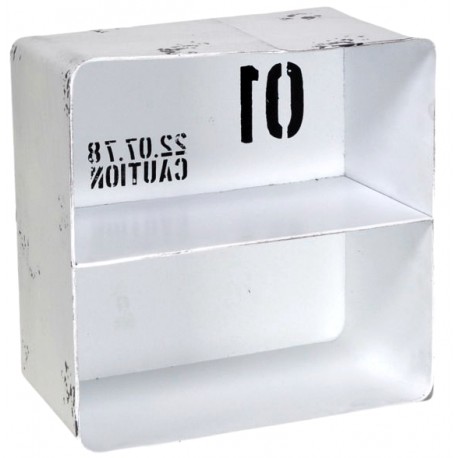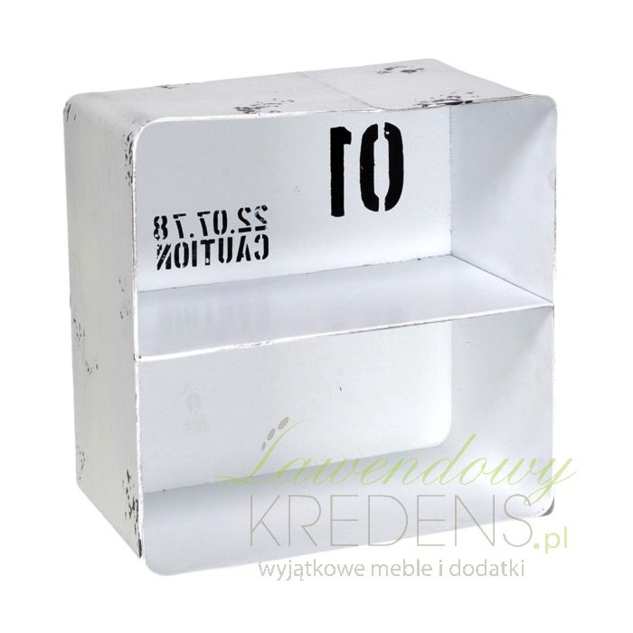 Kwadratowa szafka ścienna to mebel w całości wykonany z metalu i pomalowany białą farbą. Unikatowe postarzenia i napisy oraz cyfry jeszcze bardziej podkreślają jej surowy charakter. Szafki industrialne do zawieszenia na ścianie to modele najczęściej wybierane do łazienek i kuchni. Meble industrialne takie jak metalowa szafka dają ogrom możliwości aranżacyjnych.