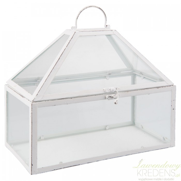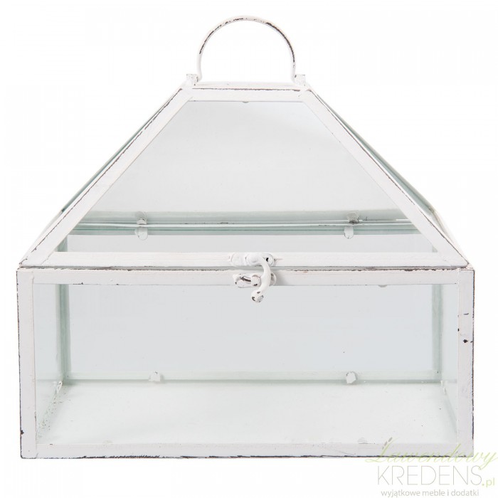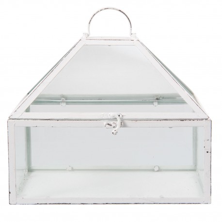 Biała szklarenka ozdobna została wykonana ze szkła i metalu. Wszystkie ściany szklarenki to szklane wstawki odsłaniające jej zawartość. Subtelne postarzenia, jasny kolor i perfekcyjne wykonanie posłużą Ci przy tworzeniu ulubionych aranżacji. Wybierz dodatki w stylu prowansalskim od marki Clayre&Eef aby podkreślić to co najpiękniejsze w twoim domu.