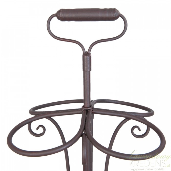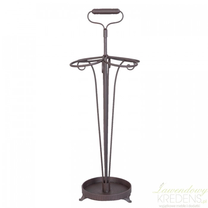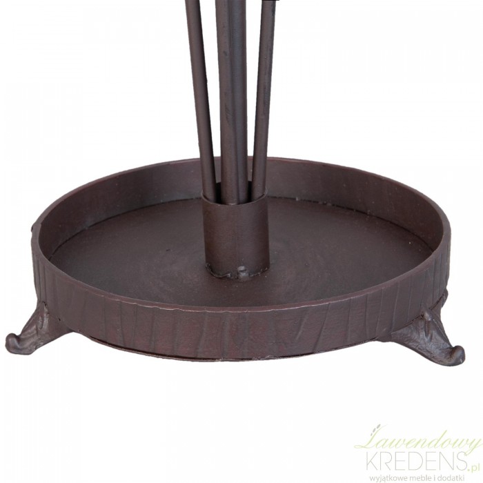 Stojak na parasole od firmy Clayre & Eef w brązowym kolorze. Stojak prowansalski wykonany jest z metalu i ma oryginalny oraz nowoczesny kształt. Dodatkowo posiada dno, które ułatwi zbieranie ściekającej wody. Stojaki na parasole przydają się w domu, biurze, poczekalni czy szatni. Dzięki takim stojakom parasole będą zgromadzone w jednym miejscu!