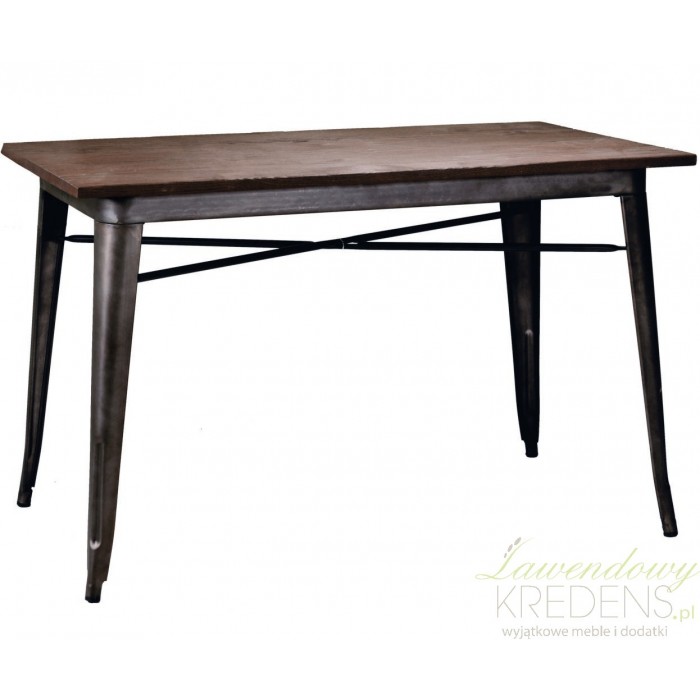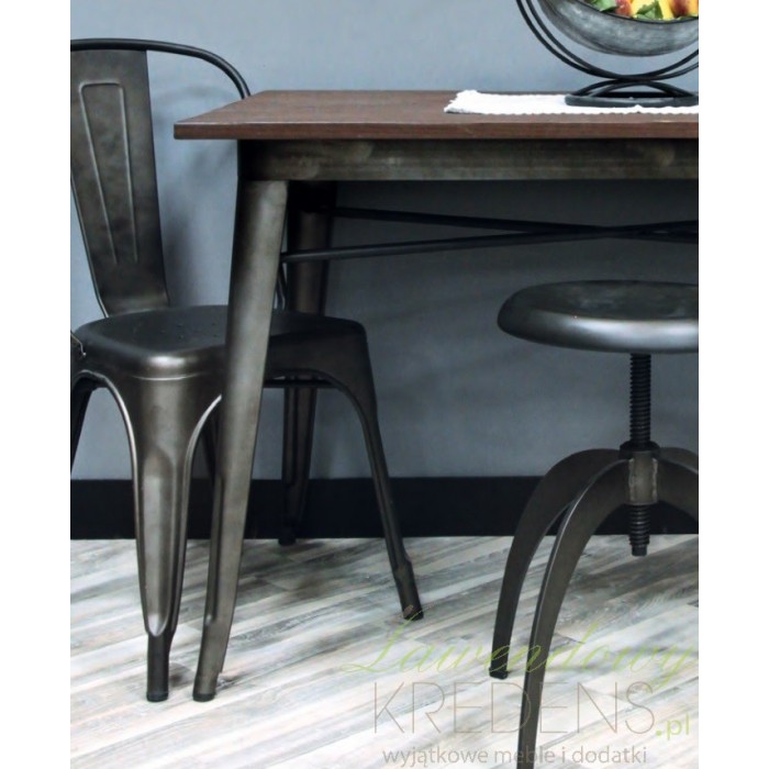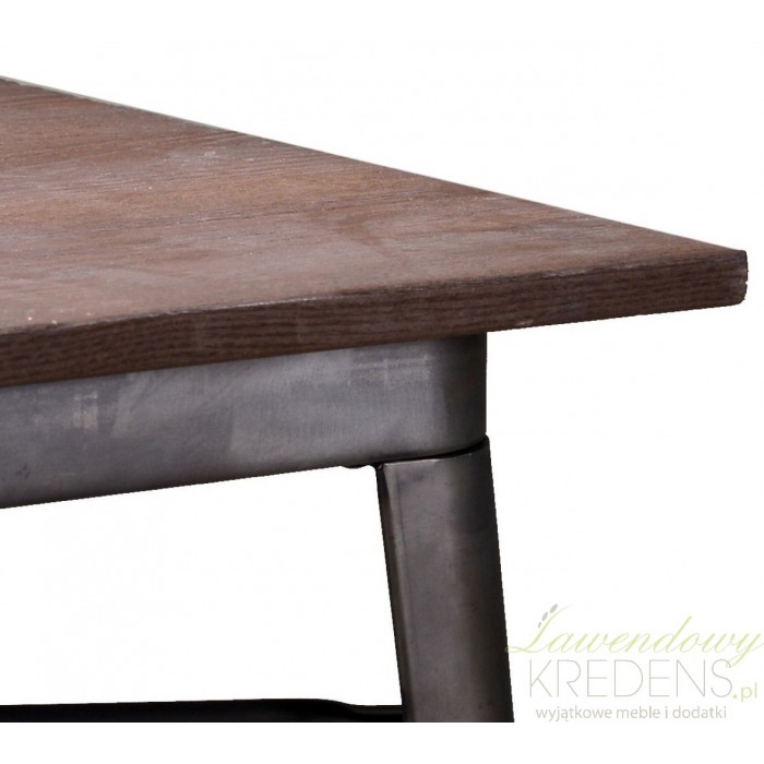 Stół industrialny ma podłużny blat w kolorze ciemnegobrązu. Drewniany blat nieco ociepla surowy charakter mebla i posiada widoczne usłojenie. Stoły w stylu industrialnym z kolekcji Lofti to różnorodność kolorów, każdy znajdzie coś dla siebie. Meble industrialne opanowały funkcjonalne wnętrza i tarasy!