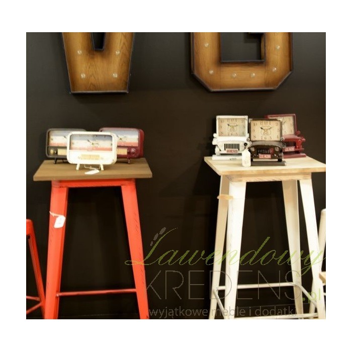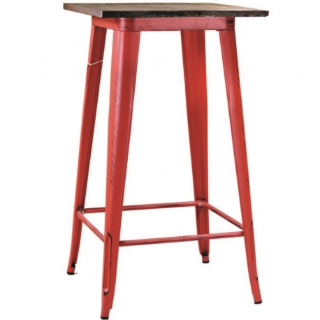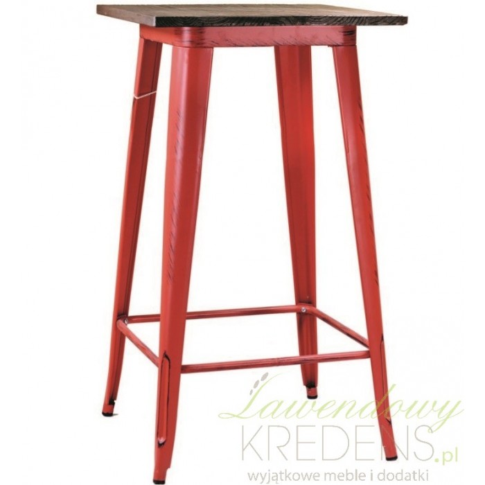 Stolik w stylu industrialnym wykonany jest z wysokiej jakości metalu i drewna. Ma śliczne czerwone i wysokie nogi i ciemnobrązowy elegancki blat. Stolik industrialny świetnie się prezentuje i wspaniale wpisuje się w klimat. Stolik barowy ma wygodny kwadratowy blat. Idealny na książki czy postawienie szklanki z gorącą herbatą czy kawą.