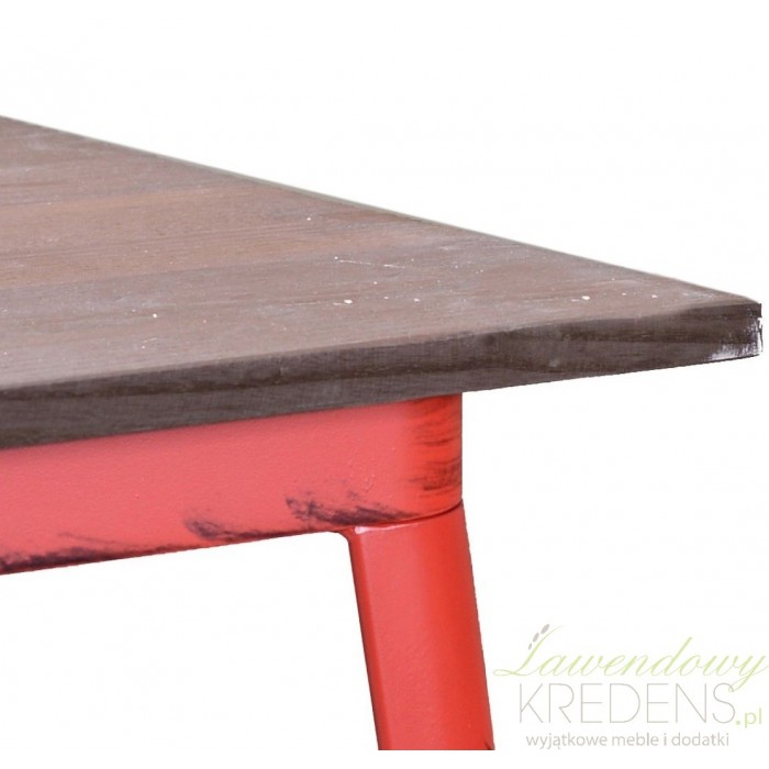 Czerwony i metalowy stolik industrialny z kolekcji Lofti z ciemnobrązowym blatem!