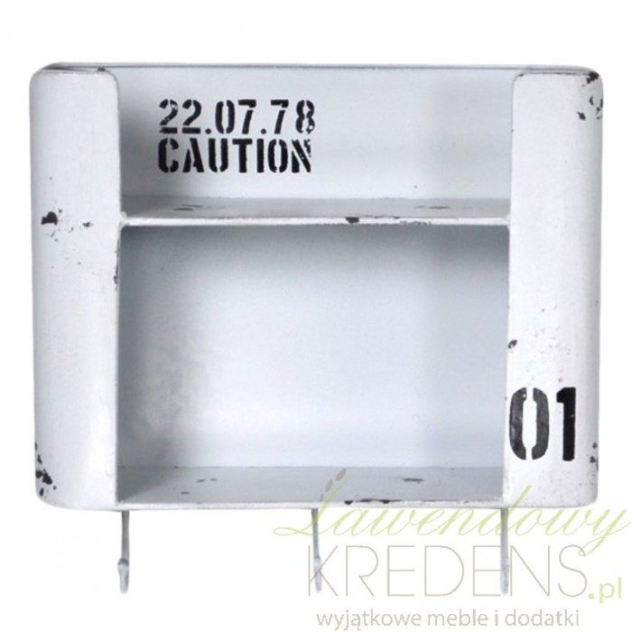 Półki ścienne z wieszaczkami sprawdzą się w wielu praktycznych wnętrzach takich jak np. łazienka. Przygotowane w postarzonej formie posiadają odpryski, po których zostały czarne ślady. Półki ścienne z kolekcji Lofti to także ozdobne napisy na ścianie wewnątrz półki i na ścianie z zewnątrz. Meble metalowe i dodatki w stylu industrialnym inspirowane antycznym designem są przydatne w każdym z wnętrz.