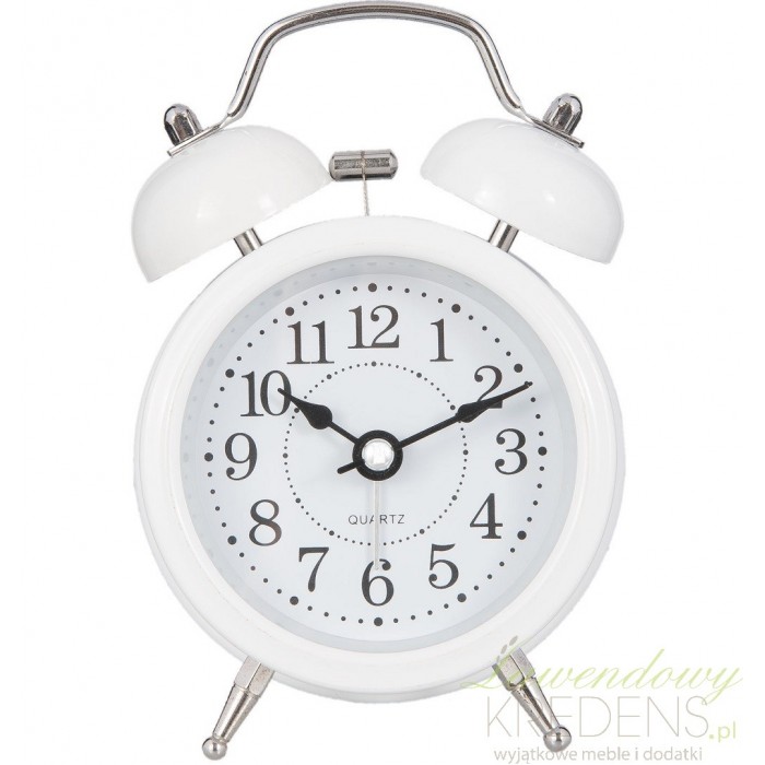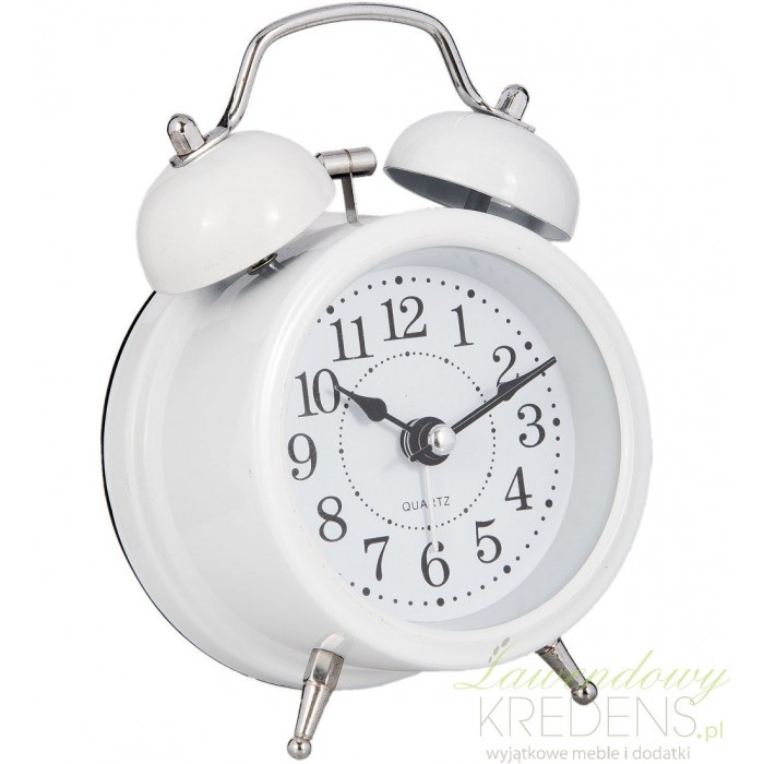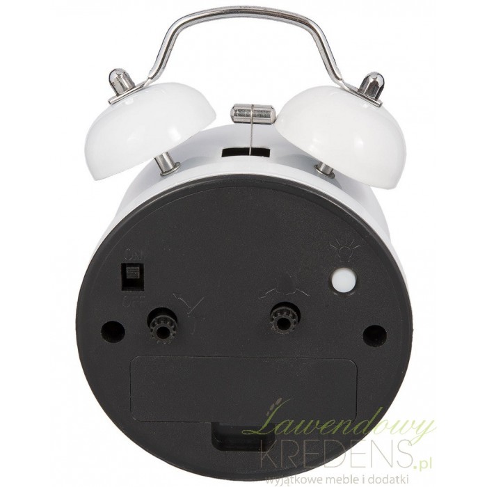 Budzik w stylu retro jest pełen klasy i stabilnie opiera się na dwóch, zgrabnych nóżkach.