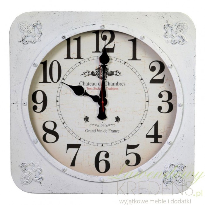 Kwadratowy zegar może zagościć na Twojej ścianie i stać się wiernym towarzyszem całej aranżacji w stylu francuskim.
