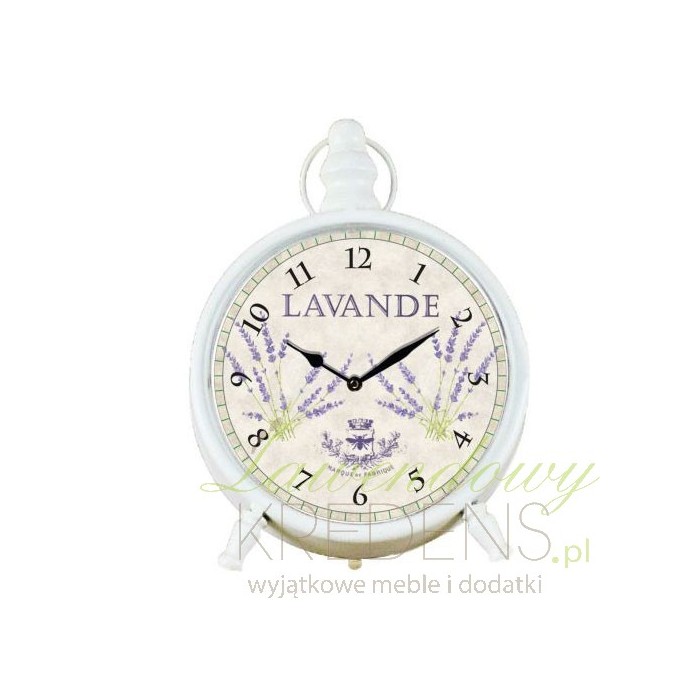 Zegarek prowansalski, którego głównym motywem jest fioletowa lawenda wypełni twoje wnętrze przyjaznym klimatem. Zegarek stołowy będzie pasował do wnętrz takich jak jadalnie, restauracje i salony. Zegar prowansalski ma dwie nóżki, które stanowią jego oparcie oraz jasną tarczę z napisem Lavende. Wybierz zegarki w stylu prowansalskim i śmiało ustaw w reprezentatywnym dla całego wnętrza miejscu.