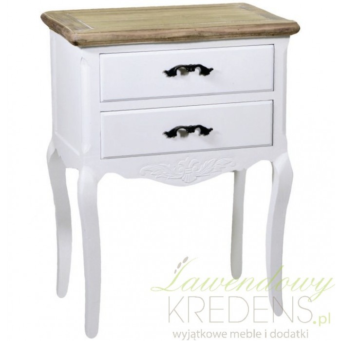 Biała szafka w stylu prowansalskim będąca jednym z uroczych mebli prowansalskich sprawdzi się w roli szafki nocnej perfekcyjnie! Świetne połączenie brązowego blatu z białym korpusem, rzeźbione nogi i śnieżnobiały kolor to cechy podkreślające wyjątkowość szafki Rustic. Urządzając sypialnię warto zwrócić uwagę na białe meble. Stolik nocny z szufladkami w górnej części to jedno z najlepszych rozwiązań.