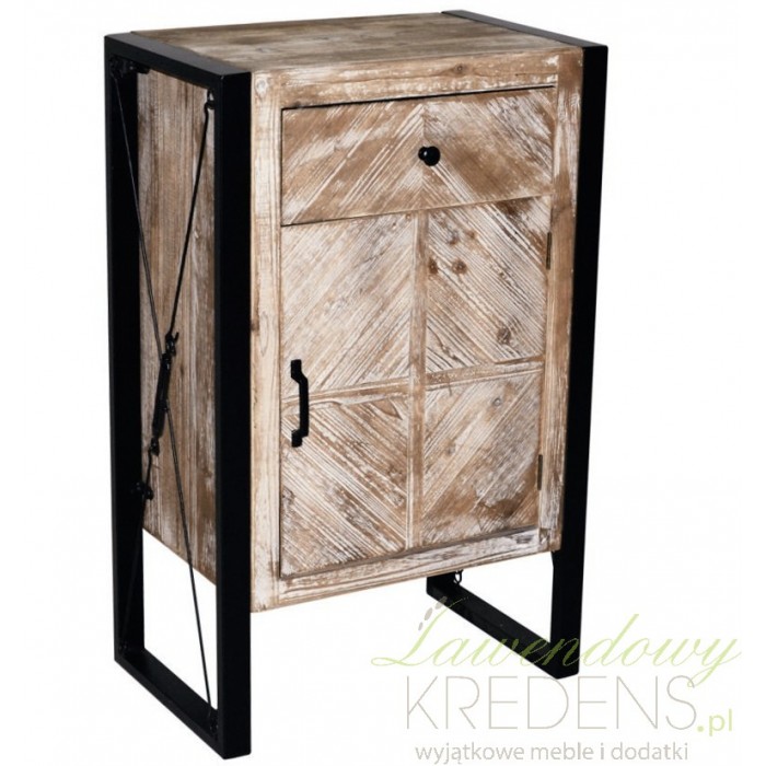 Komoda loftowa wykonana jest z drewnianego forniru, metalu i płyty MDF. Bielona komoda ma niepowtarzalny i ciekawy wygląd i wisi na metalowej konstrukcji. Zbudowana jest z otwieranej szafki i szufladki do której można włożyć ważne drobiazgi. Bielone meble to niesamowity styl i jedyny w swoim rodzaju wygląd.