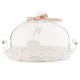 Tace z kloszem to dodatki, które pomogą nam przechować lub zaserwować przekąski. Wiklinowa taca jest biała i ma dwa uchwyty ułatwiające jej trzymanie. Natomiast osadzony na niej klosz jest szklany i posiada uroczą dekorację na szczycie. Wiklinowe tace to doskonałe rozwiązanie na imprezy, jak również idealny pomysł na prezent!