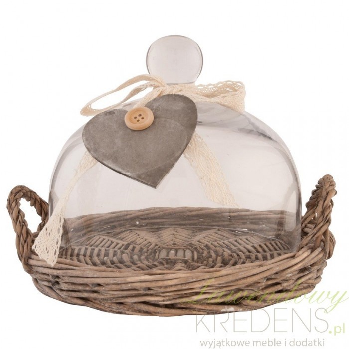 Wiklinowa taca w stylu prowansalskim gwarantuje wyjątkowy aranż. To co ją wyróżnia to para funkcjonalnych uchwytów, ciekawy kształt i szare serce oraz koronkowa wstążka. Wiklinowe tace to prawdziwie przydatne akcesoria będące doskonałym sposobem na dodatkowe miejsce na cukierki lub owoce. Tace z kloszem od Clayre&Eef to produkty także dla tradycjonalistów.