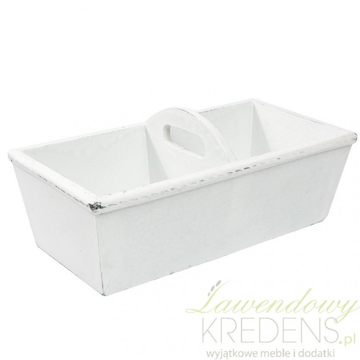 Biała, drewniana taca z przegródkami z kolekcji Shabby Chic!