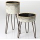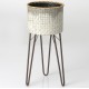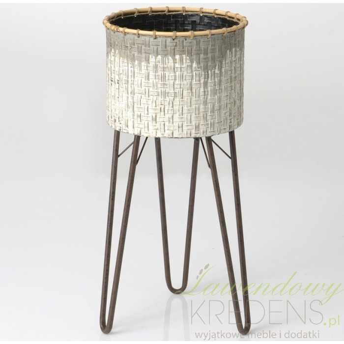 Postarzany kwietnik metalowy został wykonany w całości z metalu i stabilnie opiera się na trzech podwójnych nogach. Osłonka w kolorze białym z szarym zaciekiem od góry jest okrągła i może zmieścić dosyć duży kwiat bądź inną roślinę. Doskonałe połączenie antycznego uroku z industrialnym designem zapewni unikatowy wygląd ogrodu na codzień. Nieoczekiwane i piękne zestawienia styli takie jak metalowe kwietniki, odnajdziesz w naszej ofercie!